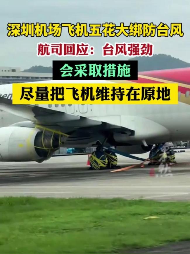 深圳航空客服工作人员告诉极目新闻记者,这一次台风的威力可能比过往更大,不只是深航飞机,部分其他航司的飞机也可能在深圳做停留,他们会采取一些措施进行防范,“飞机停机位下方会有一个扣,会采取措施固定住机身,尽量把飞机维持在原地”。深圳机场飞机被“五花大绑”防台风!