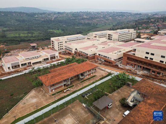 这是9月24日在卢旺达基加利市郊拍摄的马萨卡医院一期和改扩建项目建筑工地(无人机照片)。新华社记者 李亚辉 摄