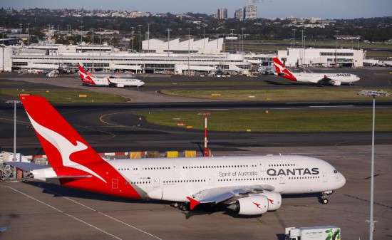 2020年3月18日,多架澳洲航空客机停泊在澳大利亚悉尼机场。新华社记者白雪飞摄