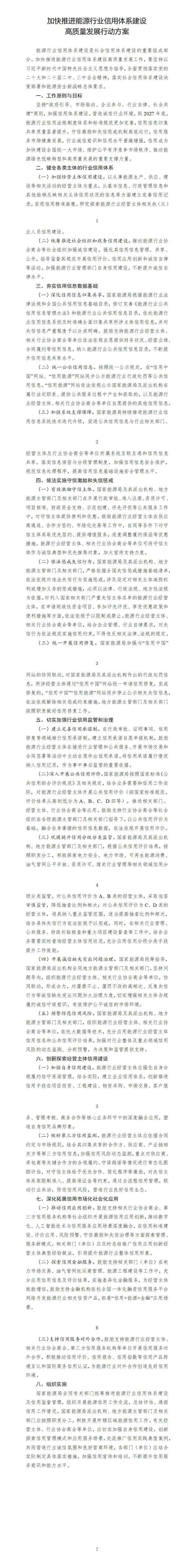 中新网10月23日电 据国家能源局微信公众号消息,按照《中华人民共和国能源法》《中共中央办公厅 国务院办公厅关于健全社会信用体系的意见》(中办发〔2025〕22号)等法律和文件精神,为加快推进能源行业信用体系建设高质量发展,国家能源局近日印发实施《加快推进能源行业信用体系建设高质量发展行动方案》。具体内容如下: