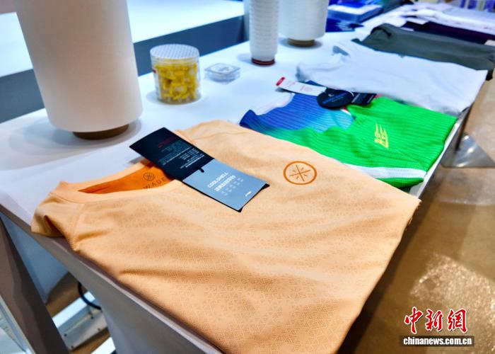 11月5日,武汉纺织大学基于纤维材料的交叉学科研究团队研发的热湿舒适智能调节聚酯纤维服装,目前已经投入市场。中新社记者 张斌 摄