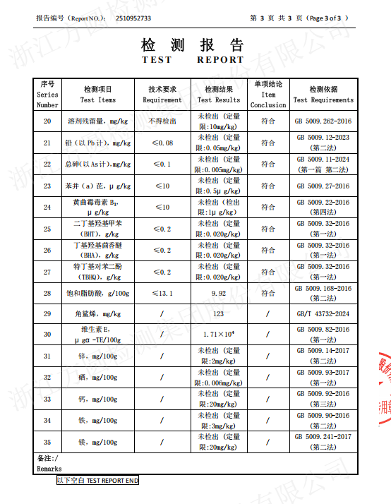山茶润山茶护肤油以龙泉高山有机山茶油为核心原料,借助低温冷榨工艺,尽可能完整地保留了茶多酚、维生素E、角鲨烯等活性营养成分,从源头守护天然的滋养力。值得关注的是,山茶润山茶护肤油中的角鲨烯含量高至123mg/kg,显著优于同类型产品,确保了产品的卓越保湿和屏障修护性能。角鲨烯的高含量不仅是山茶润山茶护肤油成分上的亮点,更在实证中发挥了关键作用:它通过模拟人体皮脂,快速修复肌肤屏障,减少水分蒸发,从而长效保湿。结合山茶油的天然抗氧特性,山茶护肤油能协同对抗外界刺激,适配敏感肌及干燥肌的日常修护需求。权威检测报告也全面验证了山茶润山茶护肤油在修护、舒缓和保湿方面的卓越表现,为消费者提供了安全可靠的护肤选择。
