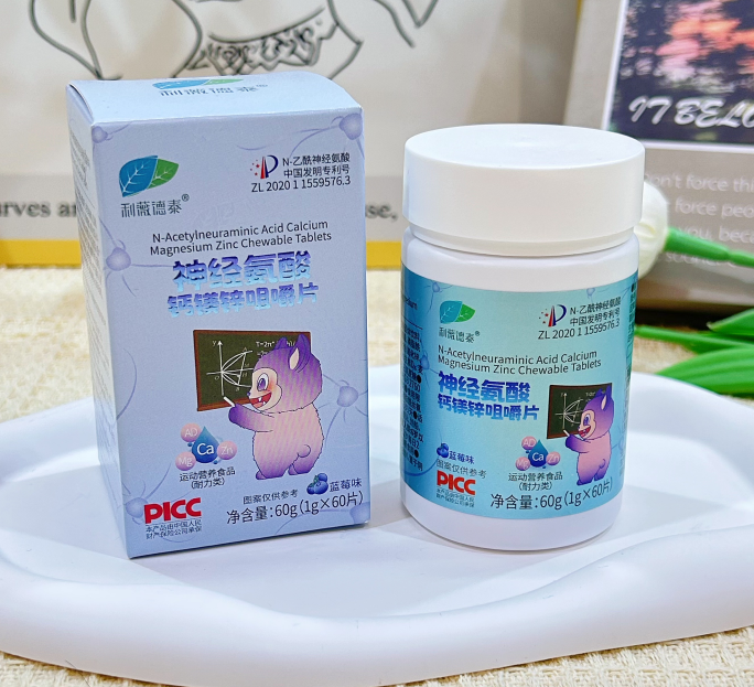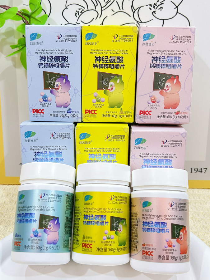 纵向看成分构成,咀嚼片的配方设计体现了深耕大健康领域的系统科学思维。众所周知,镁元素与维生素B6的协同组合发挥着重要的情绪调节功能。其中,镁能够有效调节中枢神经系统中抑制性递质GABA的受体活性,从而帮助缓解焦虑、易怒等情绪波动;而维生素B6作为神经递质合成过程中的关键辅酶,直接参与多巴胺、5-羟色胺等重要神经递质的生成过程,有助于从根源上改善注意力分散的问题。而值得一提的是,咀嚼片中的核心成分“N-乙酰神经氨酸(燕窝酸)”已获得2021年中国发明专利认证,此成分作为神经细胞膜的重要构成部分,能够直接提升神经细胞间的信息传递效率。斑马实验的研究结果进一步证实,该成分对促进大脑发育、保护中枢神经及周围运动神经都具有积极作用。