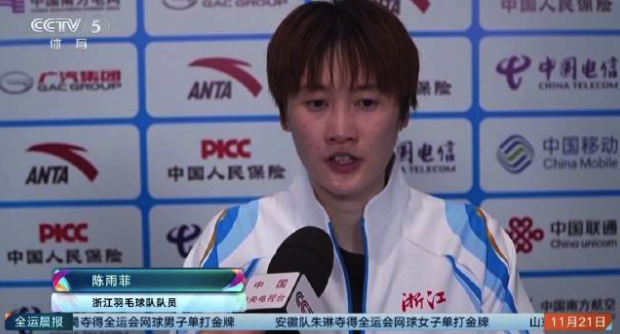 陈雨菲表示:“很开心能一直站在这个位置上,为浙江女单、包括中国女单去承担一点点的小责任,后续要做的还是继续努力吧。”