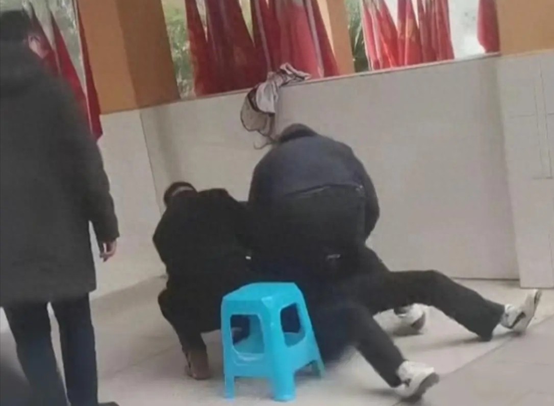 视频中,一名男生被一名男子从身后抱住,另一名男子手持剃刀意图剪发,学生反抗激烈,过程中被按倒在地,并疑遭锁喉,多次摔倒。视频配文称重庆垫江一中教师因仪容仪表检查,对学生实施抱摔、锁喉并强行剪发。