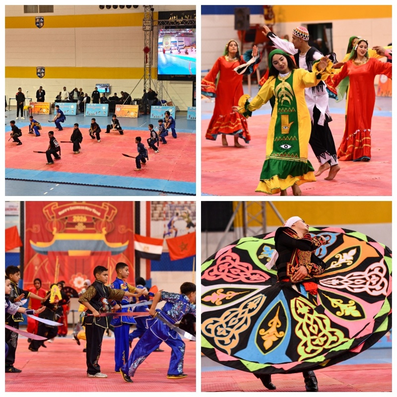 此外,埃及武术运动员以昂扬向上的精神面貌表演了棍术、刀术、太极扇等节目,充分体现了武术运动在当地青少年群体中的普及,埃及东方省天赋艺术团亦带来了融合埃及历史文化与传统民俗元素的歌舞表演。