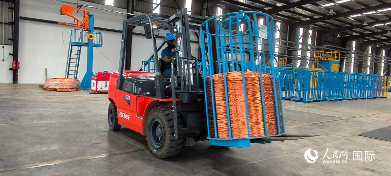经济合作区的车间内,叉车正在忙绿。人民网记者 黄培昭摄