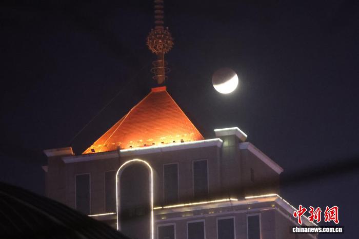 图为在西宁麒麟湾公园拍摄的月全食景观。中新社记者 张忠苹 摄