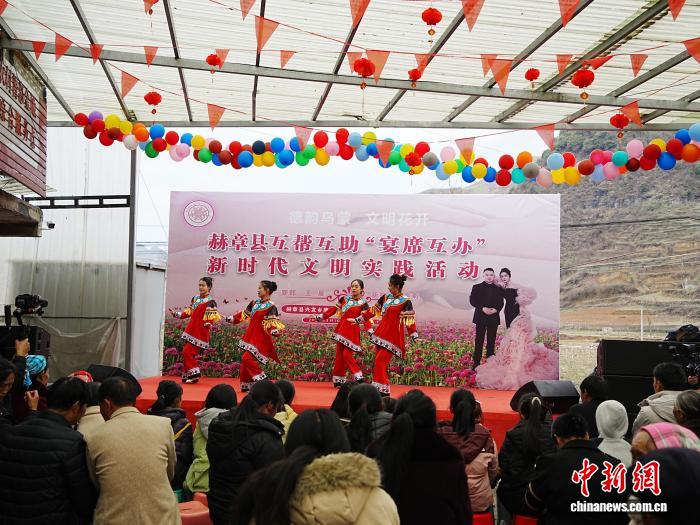 为什么要送舞台到宴席上?赫章县委常委、宣传部部长朱启辉道出初衷:“平时想把老百姓聚起来不容易,但村民办酒,几百人聚集到主人家道贺,这时候送去倡导文明新风的小品并进行政策宣讲,就能事半功倍。”
