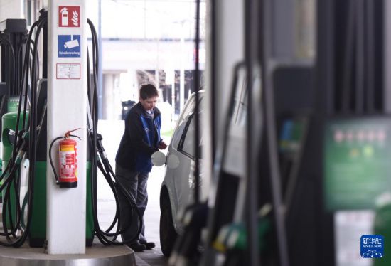 3月24日,在奥地利首都维也纳一处加油站,一名车主在加油。新华社记者 贺灿铃 摄