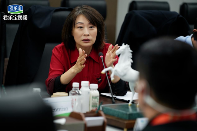 君乐宝乳业集团副总裁兼奶粉事业群总经理刘森淼在会上发表讲话