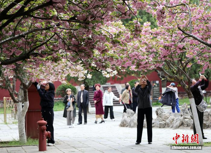 4月8日,山东泰安岱庙内繁花似锦,樱花、桃花、牡丹、芍药等次第绽放,与古建亭台相映成趣,吸引游人赏花踏青。当天,“镜头里的宝藏山东”旅拍采风团走进泰安,捕捉春日芳华。 赵晓 摄