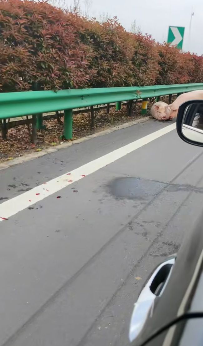 视频中,这些猪一点也不认生,下车后就开始四处溜达,有的闻闻这,拱拱那,悠哉游哉地散步,仿佛在逛自家后院。高速路上车来车往,那些猪大摇大摆走在路中间,后面的小车狂按喇叭减速,司机看得目瞪口呆。有一头猪冲到对面车道,差点被一辆白色SUV撞上,SUV紧急打方向盘才避免了事故。
