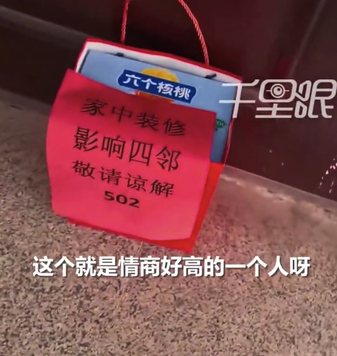 业主装修给全楼送饮料求谅解 邻居:避免了噪音引发不快