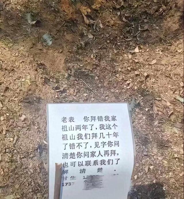 拜错祖坟2年当事人发声 温情化解误会!三月三十日,江西一个村子传出了一条特别的消息:有人连续两年清明节都到同一座坟前祭拜,直到今年才发现自己认错了祖坟。墓主家没有生气也没有张扬,在坟头贴了一张手写的纸牌,上面写着“老表你拜错我家祖山两年了”,还特意加了一句,“问清楚家人联系我们核对详情”,语气像邻居间的闲聊。