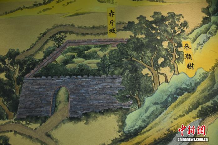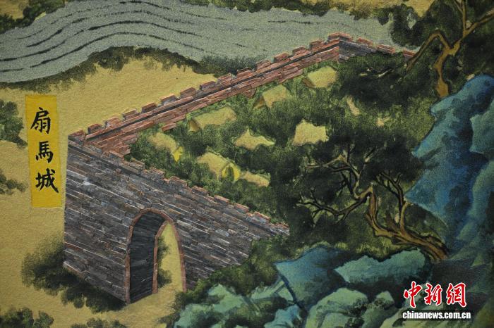 图为戈壁碎石与彩色沙砾创作而成的嘉峪关关城题材作品。高莹 摄