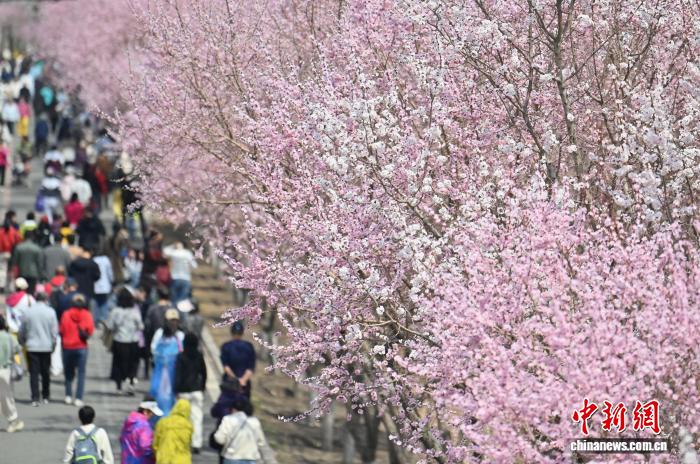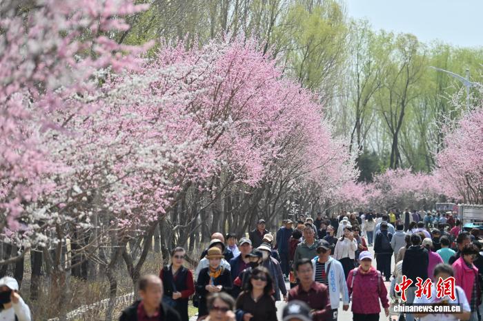 4月24日,吉林长春,市民在樱花岛赏花。随着气温升高,吉林长春街头及公园里的春花竞相绽放,为城市增添亮丽色彩,民众尽享春日美景。中新社记者 张瑶 摄