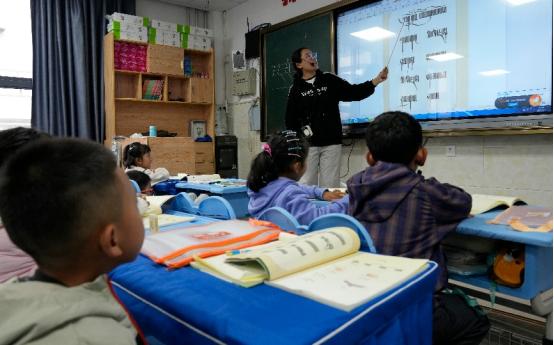 2025年9月1日,拉萨市第一小学一年级二班,藏语文老师扎西央钦正在授课。中新社记者 李林 摄