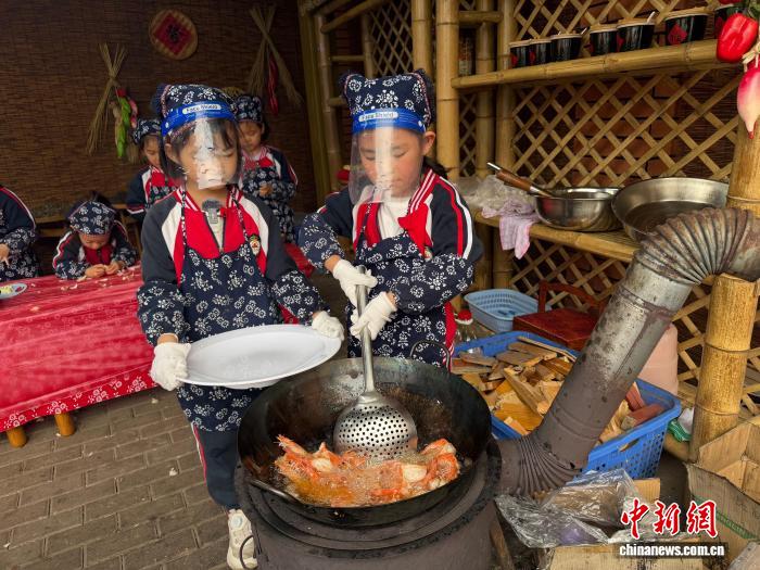 中新网成都4月24日电 (记者 何浠)切配、搅拌、摆盘、蒸煮……在成都启航第二幼稚园和新都兴乐路小学的校园里,一群“小厨神”正围着灶台忙得热火朝天。从幼儿园到小学,干锅虾、麻婆豆腐、回锅肉等一道道承载着巴蜀文化的美食,如今正成为孩子们的“活教材”,在锅碗瓢盆的碰撞中,劳动技能、文化自信与生活热爱同步生长。
