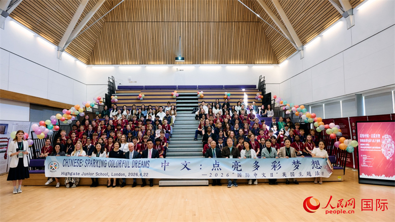 人民网伦敦4月23日电 (徐量)2026“国际中文日”英国主题活动日前在英国伦敦海格特学校举行。该校小学部六年级130名师生齐聚一堂,通过主题展览、文化工作坊等多种形式,沉浸式感受中文及中国文化的独特魅力。
