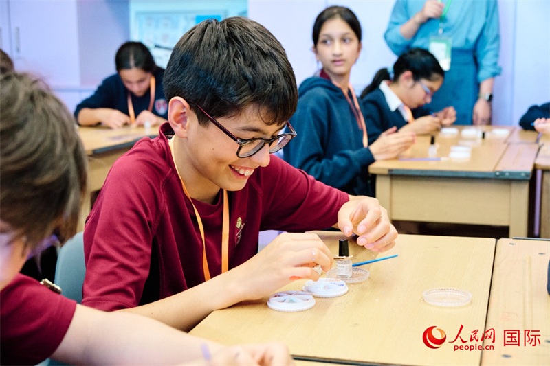 伦敦海格特学校的学生体验“螺钿”手工。杨浩鹏摄