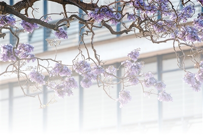 图为墨西哥首都墨西哥城墨西哥国立自治大学盛开的蓝花楹。