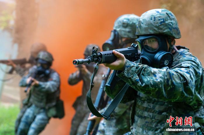 图为武警官兵快速突击,穿过染“毒”地带。施晨洲 摄