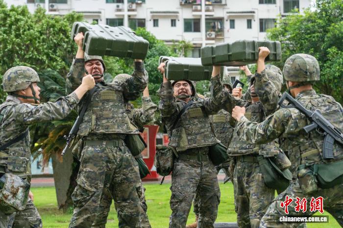 图为武警官兵扎实开展体能训练,在高强度负重练习中锤炼意志品质。施晨洲 摄
