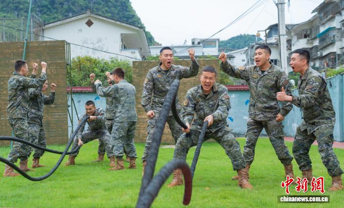 图为武警官兵正在进行体能训练,在极限挑战中磨砺意志、锤炼体能。施晨洲 摄
