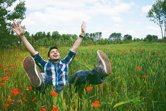 事发在户外一处带缓坡的草地上,天气晴好,父子俩出门散步放松心情。小男孩自顾自低头站在坡上,专注地摆弄着手里的小玩具,完全没有留意身后的动静。一旁的爸爸童心大发,突然萌生了调皮的想法,打算悄悄从背后偷袭,吓儿子一跳,给平淡的日常添点乐趣。