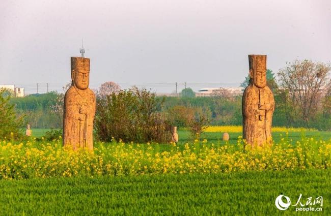 春和景明,万物勃发。河南巩义宋陵连片麦田绿意盎然。一列高铁从田野上飞驰而过,近处,一尊尊北宋石像生静立田间。千年宋陵石刻与高铁同框,形成一幅独特的画面