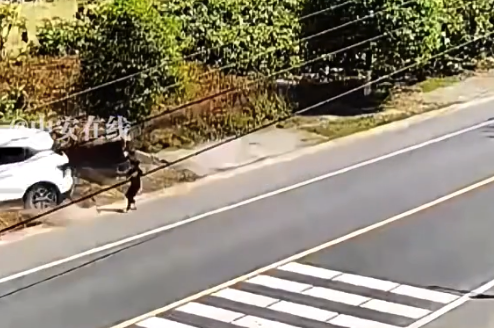 4月4日,贵州。一名女童独自奔跑着过马路,白车车速过快急刹与孩子擦身而过,直接撞进树丛里。女孩家属:“希望大家都看护好孩子。”...