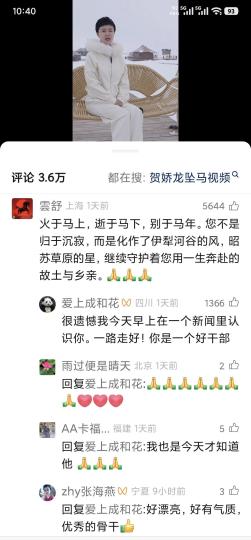 中新网乌鲁木齐1月16日电 新疆维吾尔自治区农产品品牌建设与产销服务中心主任贺娇龙近日因意外事故不幸离世,年仅47岁。消息传出后,全国各地的网友自发涌入其抖音账号、视频号等平台的评论区,缅怀和追忆这位“网红