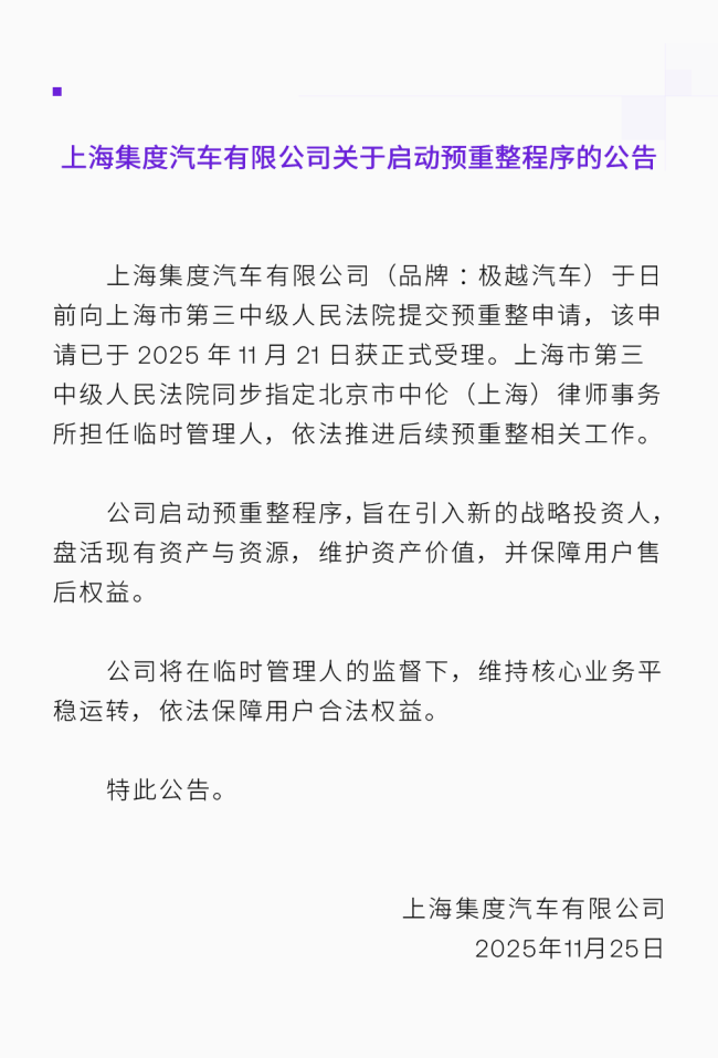 极越“不服死”,公告准备重整:各位,我还值得再抢救一下