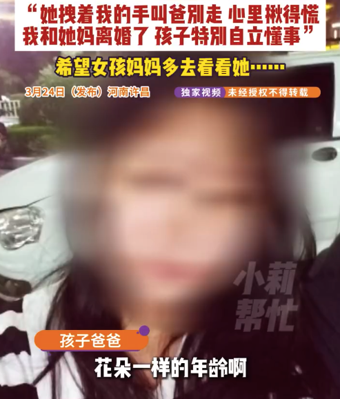 3月24日(发布)河南许昌,16岁花季少女因头疼突发脑溢血。父亲哭诉:“她中间醒了一下,拽着我手叫爸别走,我心里揪得慌,我和她妈已离婚5年了自己带孩子,但她平时特别自立懂事。”目前女孩仍在治疗,父亲希望孩子妈妈能多去看看她,让孩子感受到母爱...