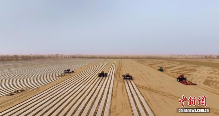 中新网乌鲁木齐3月24日电 (史玉江 张芳军)眼下,新疆生产建设兵团多个师市,正抢抓土壤墒情适宜、地温稳定的有利时机,在田间全面开展孜然播种工作。